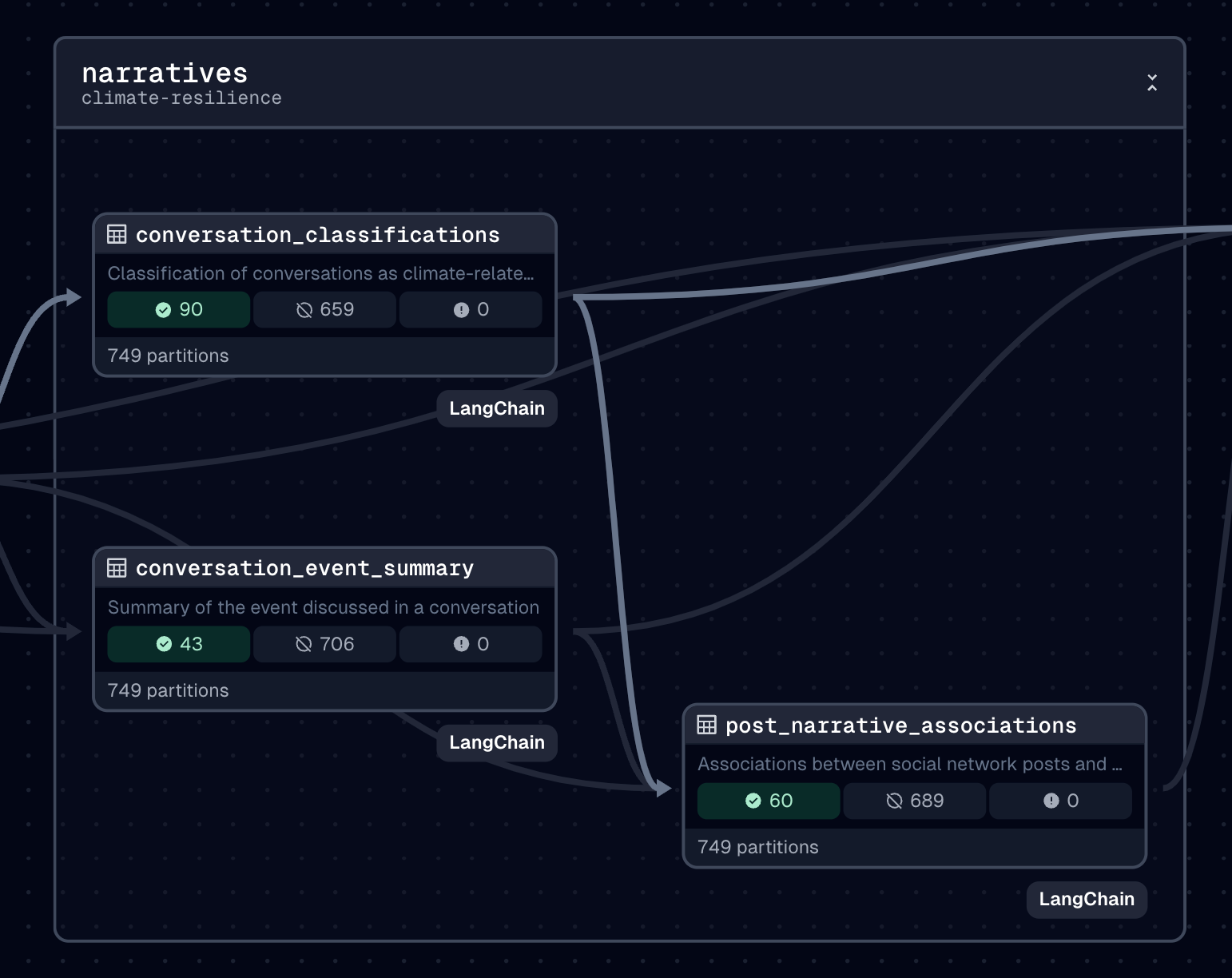 - Number of failed partitions: 0Metrics from the `post_narrative_associations` asset.