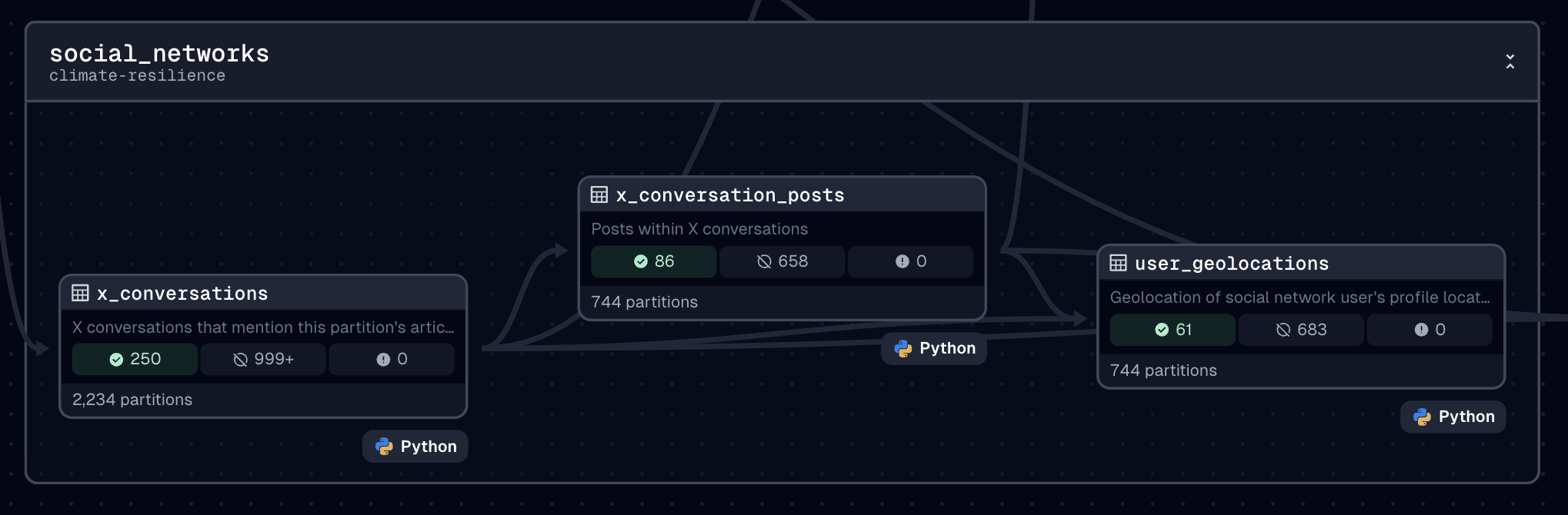 Finally, the platform produces a dimensional representation of those assets for reporting purposes. I won’t go into details here, but here’s an overview of the dbt project that generates those assets: