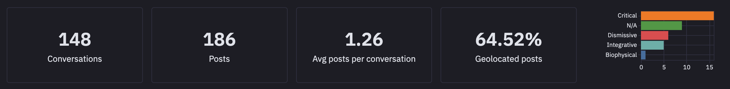 An essential focus of this data platform is tracking the geographical dimension of climate discourses. However, to do that, we need high-quality geolocation of the users contributing to the discussions. This task is complex, and I've been gradually tuning the process.