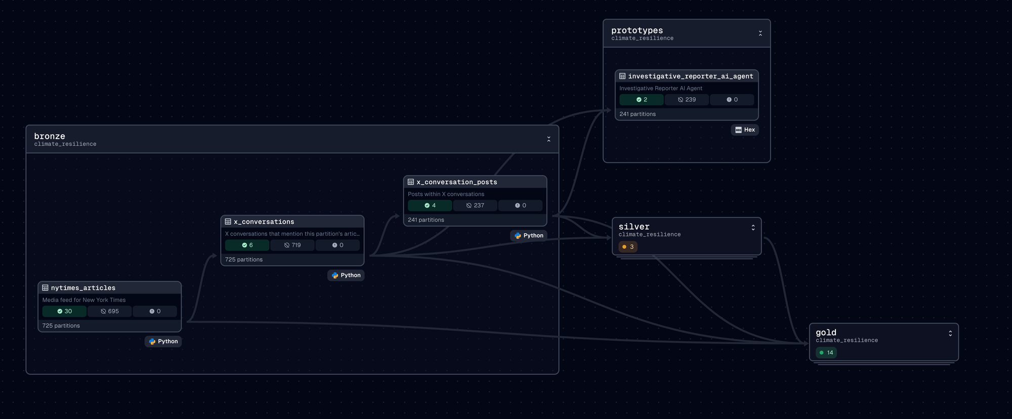 The need for automation in data analysis, especially around complex topics like climate change, has never been greater. In this post, I’ll walk you through how I’m developing an Investigative Report AI Agent prototype as part of my Climate Resilience Data Platform. This agent processes large-scale online conversations about climate change, automates research tasks, and generates investigative reports. The backbone of this workflow relies on Hex, Dagster, and LangChain to ensure a smooth orchestration of the AI’s tasks.